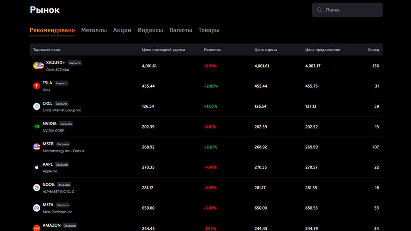 Во-первых, появились контракты на разницу цен (CFD) на акции ведущих мировых компаний. В мае 2025 года биржа запустила торговлю 78 CFD на американские акции, включая все популярные ценные бумаги технологических гигантов, таких как Apple (AAPL), Tesla (TSLA), NVIDIA (NVDA), Amazon (AMZN), Microsoft (MSFT) и Alphabet (GOOG).